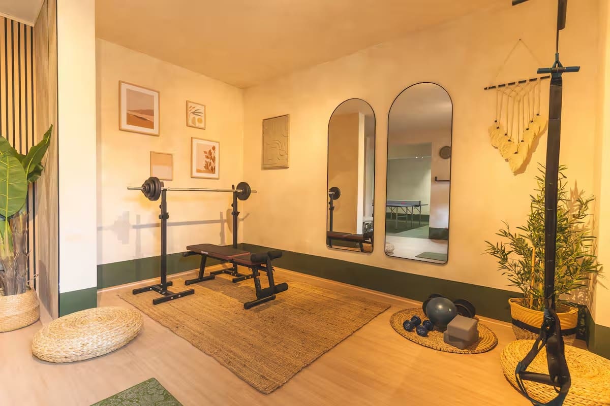 The house has a well‑equipped private gym, offering everything you need to keep up your training routine during your stay. It is set up for full‑body workouts and active recovery, making the villa especially attractive for guests who care about wellbeing and longevity and do not want to rely on a public gym.